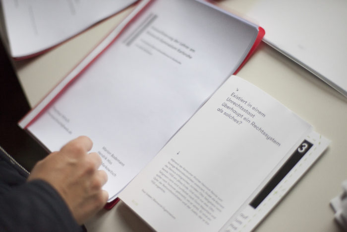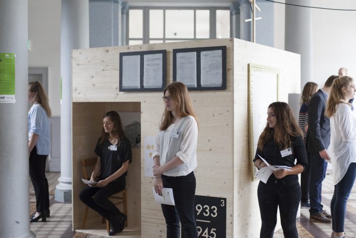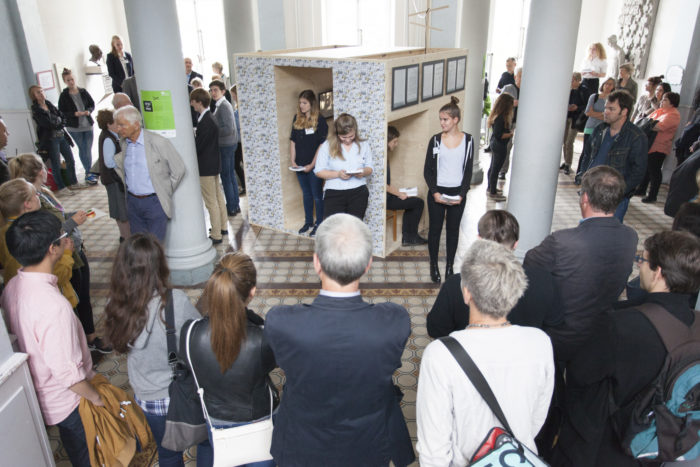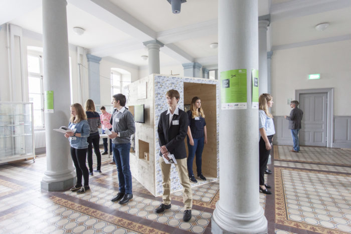 Denn auch das Erinnern unterliegt Veränderungen, knüpft doch der Seminarkurs an den in den 1980ern vom Stadtjugendausschuss e. V. in gedruckter Form vorgelegten historischen Stadtrundgang „Nie wieder! – Karlsruhe im Nationalsozialismus“ an. 2007 wurde dieser zur Webseite www.ns-in-ka.de weiterentwickelt, welche 2017 das nun aktuelle Aussehen erhielt. 2015 stand ein 2 m³ großer Kubus im Raum, den die 14 Schülerinnen und Schüler des Seminarkurses nutzten, um ihre künstlerischen Umsetzungen darzubieten.